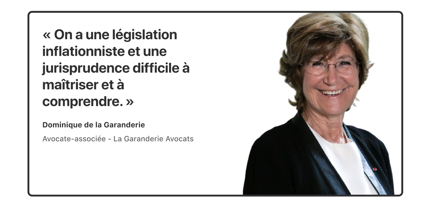 Dominique de la Garanderie, dans une interview pour Doctrine, le souligne : "On a une législation inflationniste et une jurisprudence difficile à maîtriser et à comprendre".