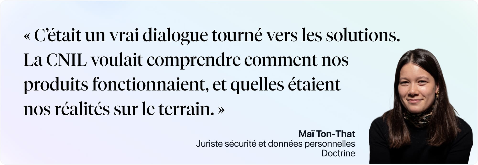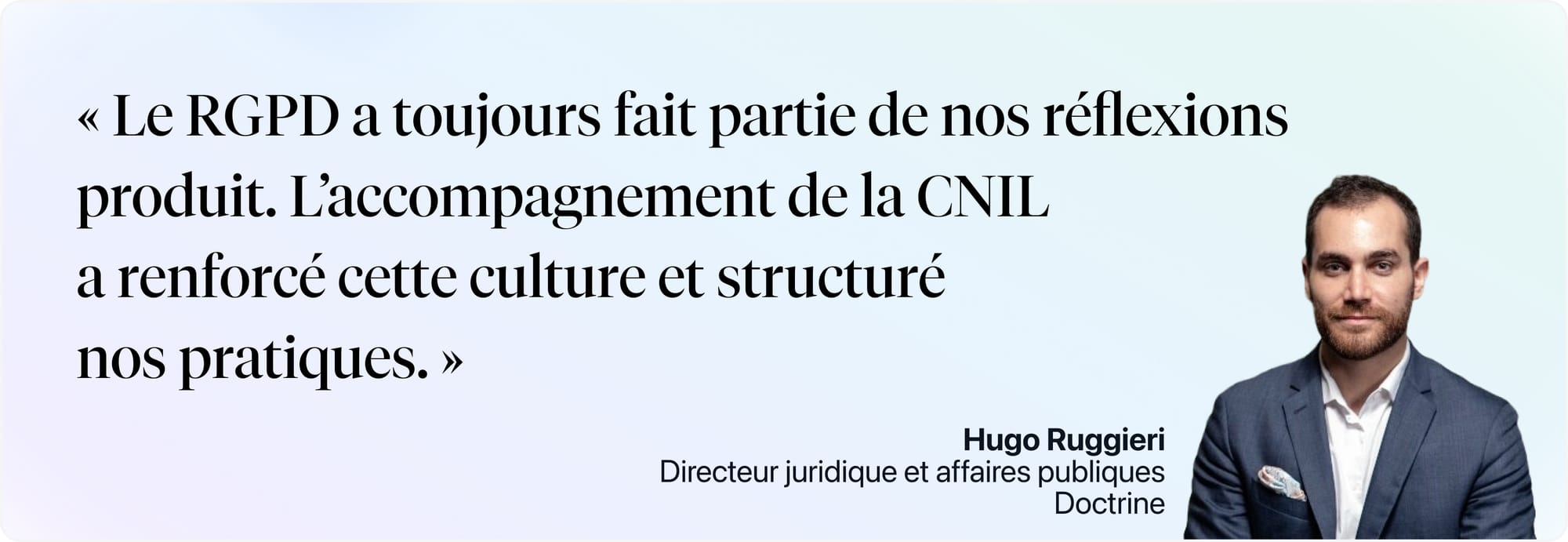 Entre septembre 2024 et août 2025, Doctrine a fait partie des 4 entreprises sélectionnées par la CNIL pour bénéficier de son programme d’accompagnement renforcé en matière de RGPD : la FDJ, Docaposte, ShareID… et Doctrine.