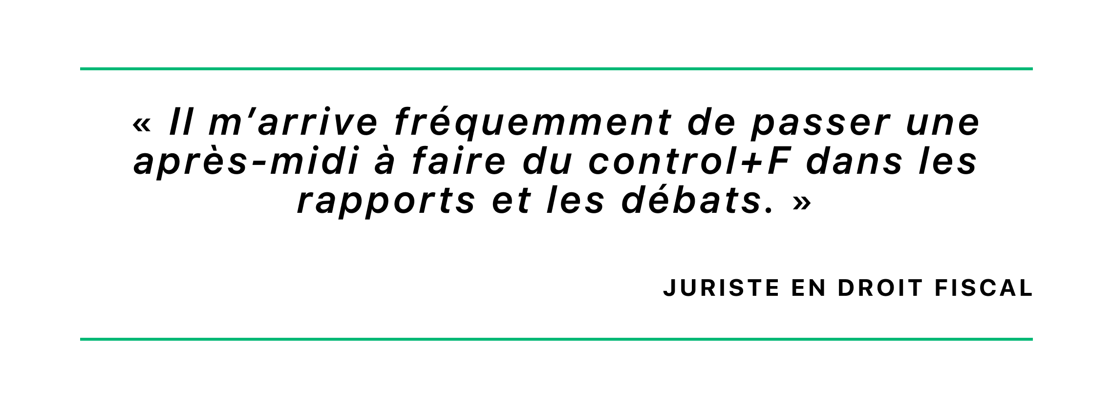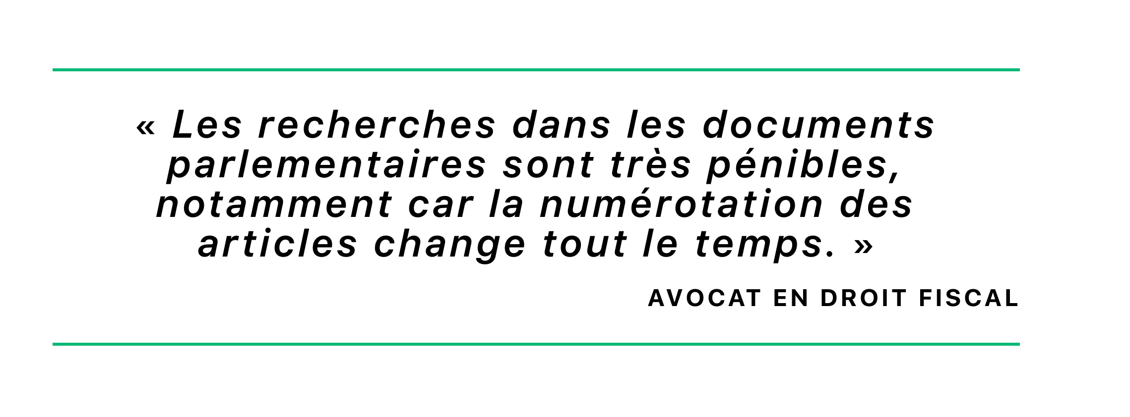 Nous travaillons sur les documents parlementaires depuis plusieurs mois pour les rendre plus accessibles, plus simplement sur Doctrine (rendez-vous ici pour en savoir plus). Dans ce cadre, nous avons eu la chance d'interroger de nombreux spécialistes, juristes, avocats, magistrats, experts juridiques pour comprendre le casse-tête que représente pour eux l'étude des documents parlementaires.