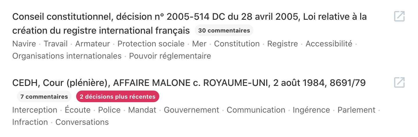 - Repérer les décisions les plus commentées ou celles ayant évoluées plus récemment