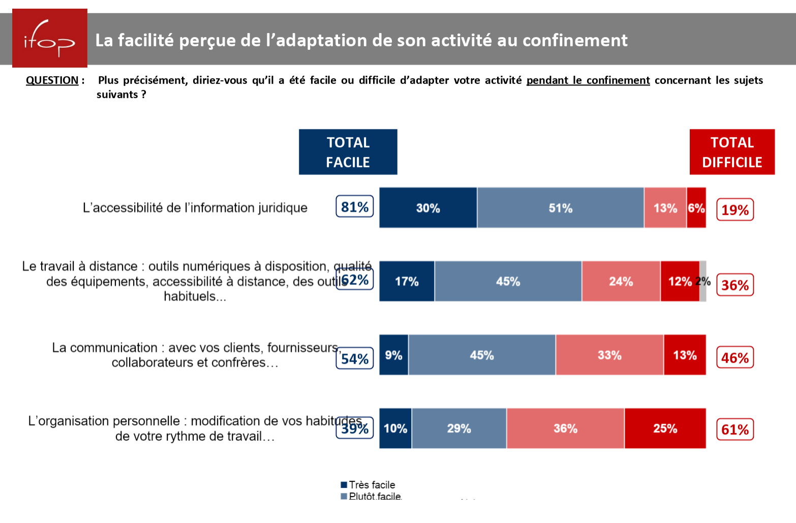 Pour 88% d'entre eux, le confinement a accru les difficultés liées à l'exercice de leur métier, même si le sentiment d'appartenance à une confrérie a beaucoup favorisé l'entraide entre professionnels. Ce qui a surtout fait la différence entre ceux qui évoquent de nouvelles complexités et ceux qui l'ont mieux vécu ? Pouvoir accéder facilement à l'information juridique et aux bons outils pour travailler à distance. Le volume d'informations a explosé pendant la crise et elles ont connu de nombreux et rapides revirements, comme en témoigne Manon Lamotte, avocate en droit social chez Eversheds Sutherland dans le podcast Droit Commun :