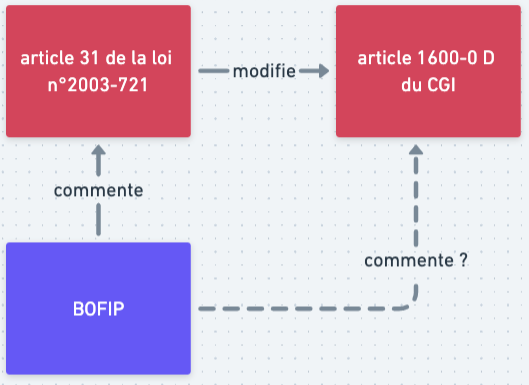 Enfin, l’exploitation de ces liens pourrait également aller plus loin en termes de valeur dans le produit. Nous exploitons principalement ce que nous appelons des liens de degré 1 : des liens directs entre deux entités ou documents juridiques. Mais parfois, des liens de degré 2 peuvent également avoir beaucoup de sens pour les professionnels du droit. Par exemple, l’article 31 de la loi n° 2003-721 du 1er août 2003 pour l'initiative économique modifie l’article 1600-0 D du Code général des impôts. Or, cet article du BOFIP ne cite que l’article 31 de la loi, et n’est donc trouvable que sur la page de l’article de loi, et non sur la page de l’article du CGI. Il pourrait être pertinent de créer ce lien, et de permettre ainsi à l’utilisateur d’avoir accès à l’article du BOFIP directement depuis l’article impacté par la loi.