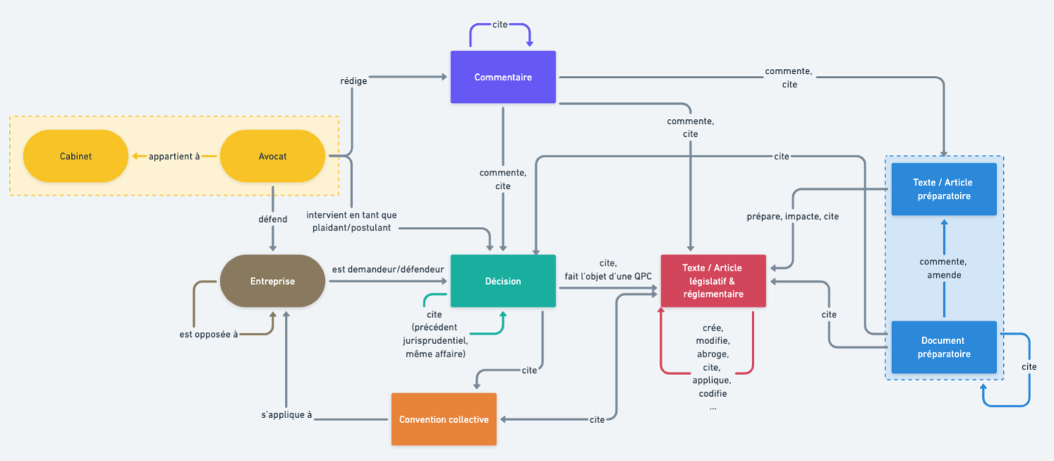 Toute cette richesse relationnelle qualifiée est ce qui constitue le legal graph, dont on peut avoir un aperçu ci-dessous.