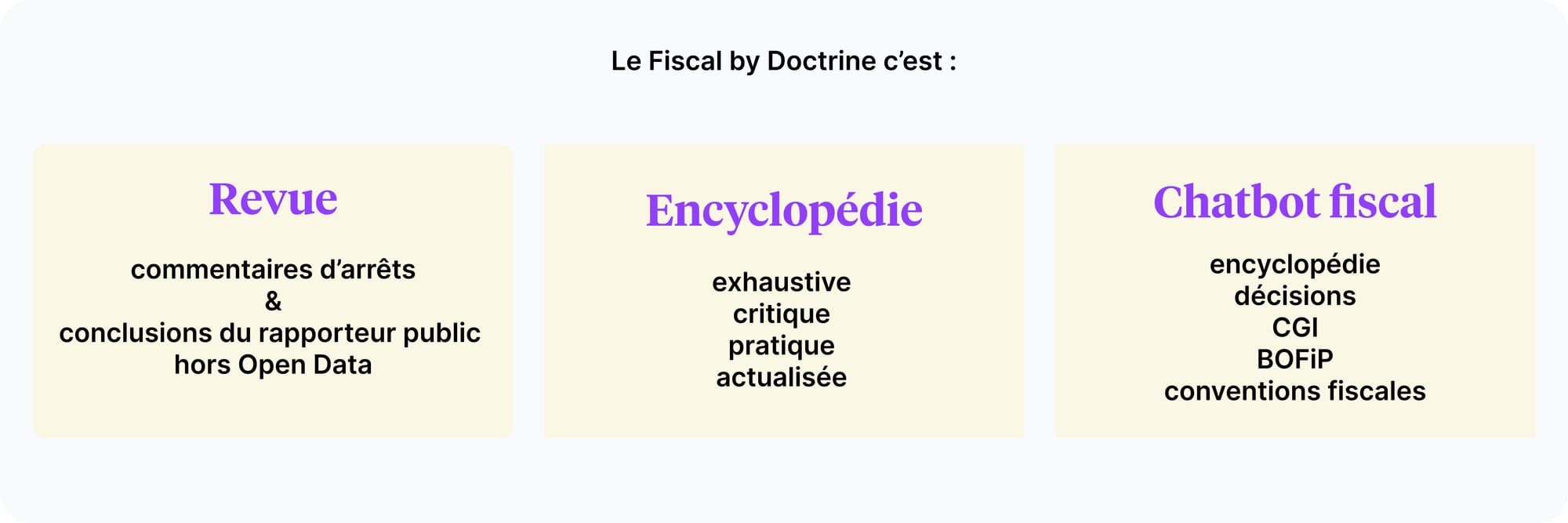 L’offre doctrinale de Doctrine qui intègre une Revue en fiscalité et une Encyclopédie.