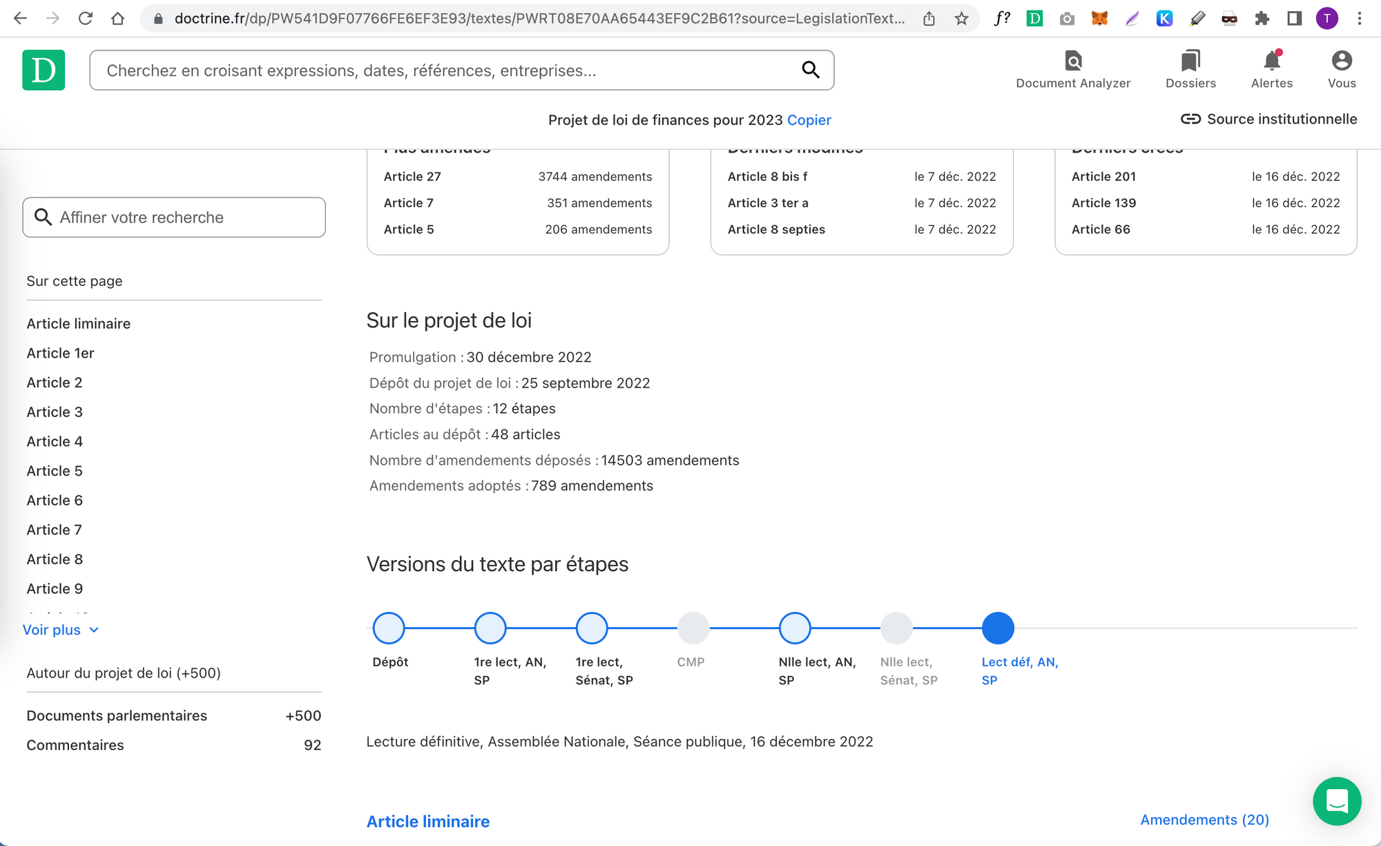 Doctrine vous permet de naviguer efficacement entre les différentes versions d’un texte en discussion, et de consulter les documents parlementaires filtrés sur l’étape de la navette parlementaire.