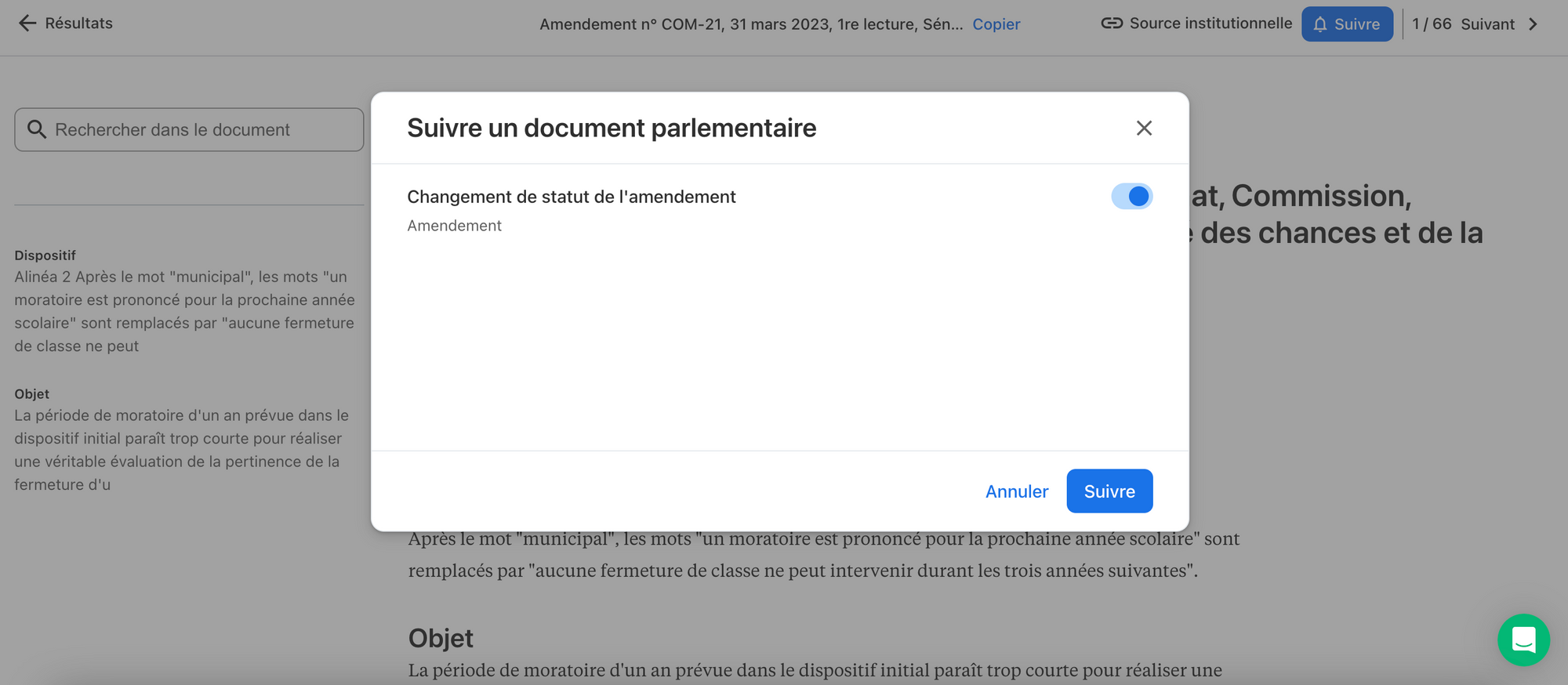 Ne passez plus à côté du sort d’un amendement. Créez votre alerte et recevez un mail dès qu’il change de statut. C’est aussi simple que ça.