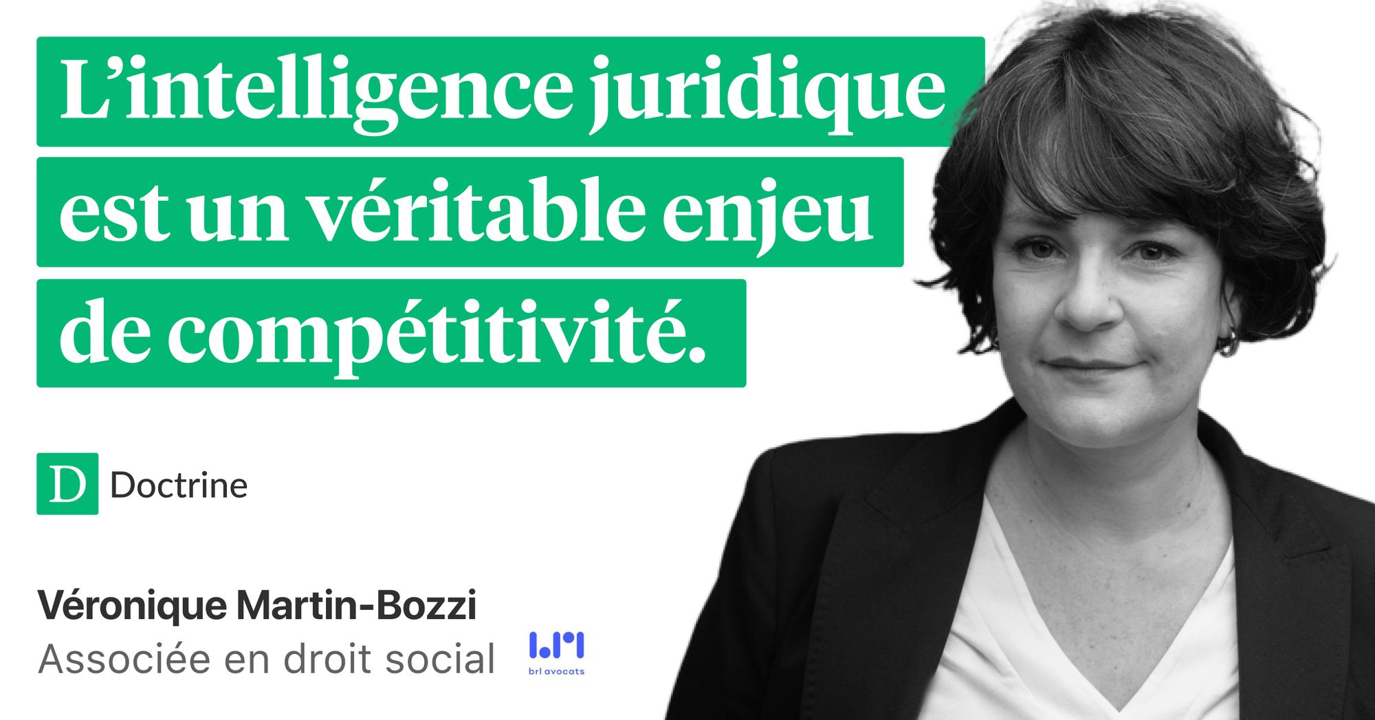 Notre première invitée à s'exprimer sur le sujet de l'intelligence juridique, c'est Véronique Martin-Bozzi, avocate au barreau de Paris, associée chez brl avocats, spécialisée en droit social.