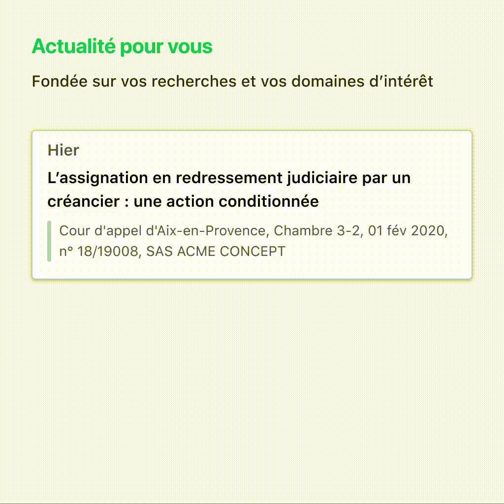 Vous avez besoin des différents contenus (décisions, commentaires, lois, codes, réponses ministérielles, documents parlementaires...) organisés, reliés entre eux. Avec une plateforme d'intelligence juridique, l'information n'est jamais un cul-de-sac : elle est systématiquement remise dans son contexte.