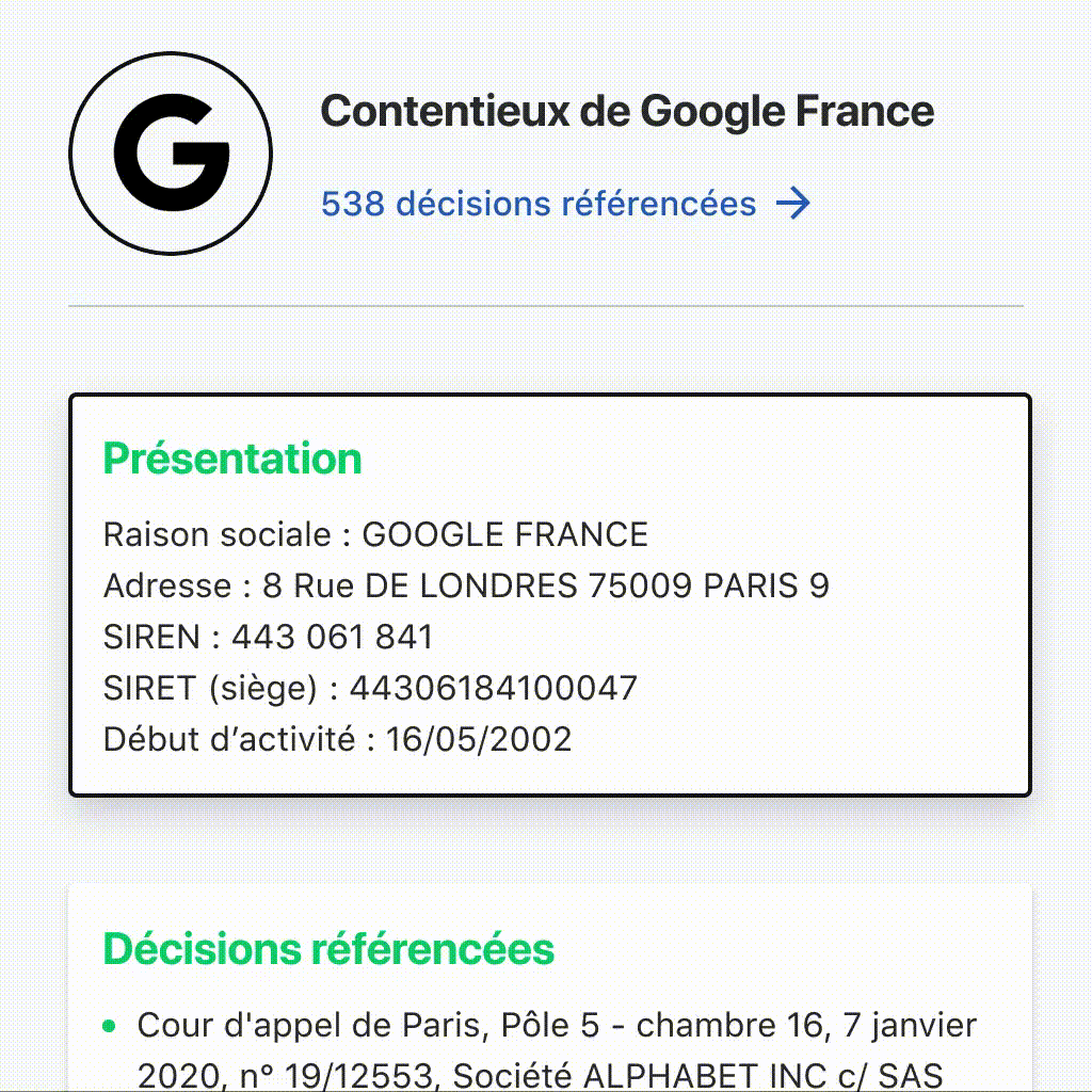 Vous avez besoin de visibilité sur le contentieux des acteurs en présence ou évoluant dans votre environnement juridique (ou celui de votre client). C'est essentiel pour construire des stratégies de conseil et défense efficaces.