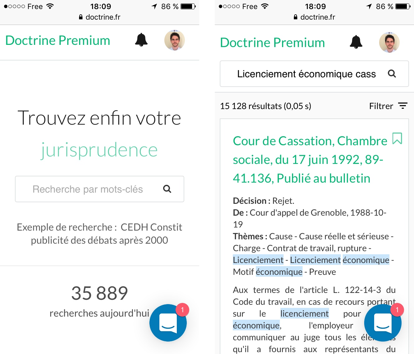 Doctrine est le seul moteur de recherche qui fonctionne sur votre mobile. Vous pouvez chercher simplement au Palais ou chez un client.