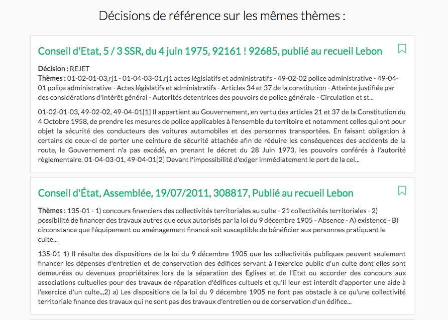 L’intelligence artificielle de Doctrine premium est capable de vous recommander des décisions pertinentes à consulter. Cette fonctionnalité est présente en bas des décisions que vous consultez.